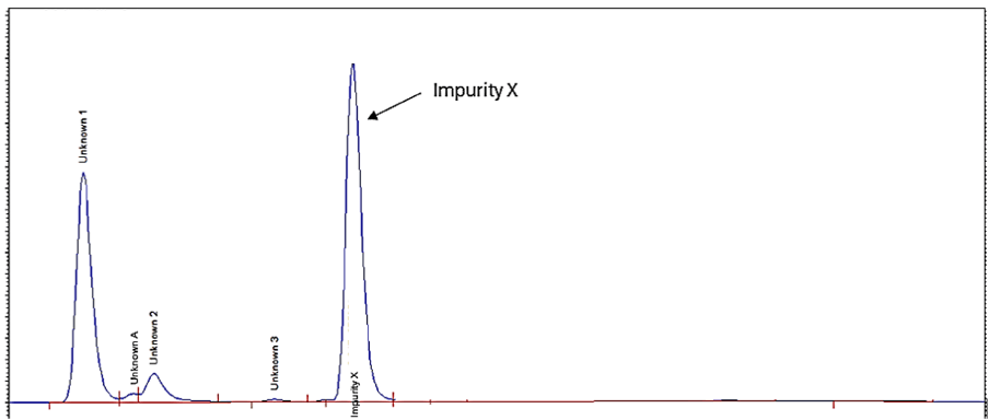 2. The goal was to develop a method capable of resolving Impurity X and any other potential early eluting compounds from the solvent front and other components (refer to Figure 2).